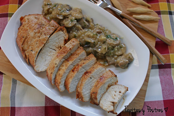 En esta ocasión se trata de una pechuga de pavo que podemos hacer a la plancha o al horno tradicional. Yo he querido experimentar como quedaba la carne cocinada en el micro y la verdad es que queda muy bien, tierna y jugosa.