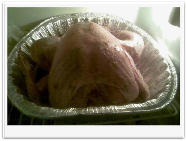 Cuando ya se note que el pavo va tomando su punto, ir mojando con el líquido que bota en la cocción, cortamos un pedacito pequeñito para probar si la carne por dentro ya está bien cocinada y con sabor concentrado, apagamos el horno y lo dejamos hasta que pongamos las cosas en la mesa.