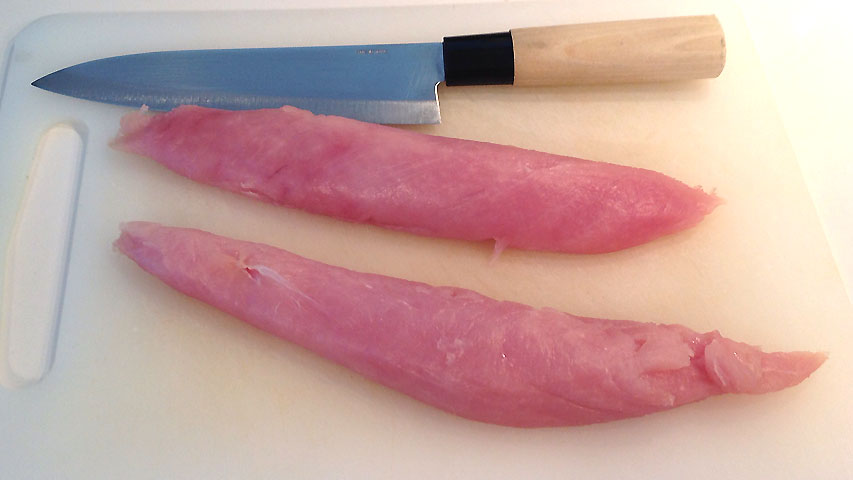 Yo he elegido lo que llamamos "solomillo de pavo", una parte de la pechuga que queda un poco separada de esta y que venden aparte.