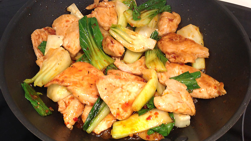 Se incorpora el famoso pak choi (semi cocido) y se saltea también muy brevemente.