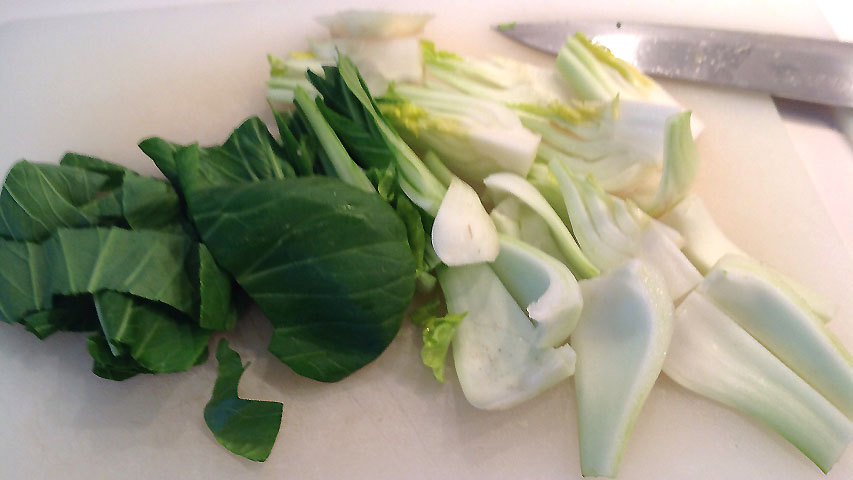 Este es el pak choi que unos llaman así y otros pak choy, bok chi o bok choy. No se de quien fiarme. El caso es que es una verdura excelente.
