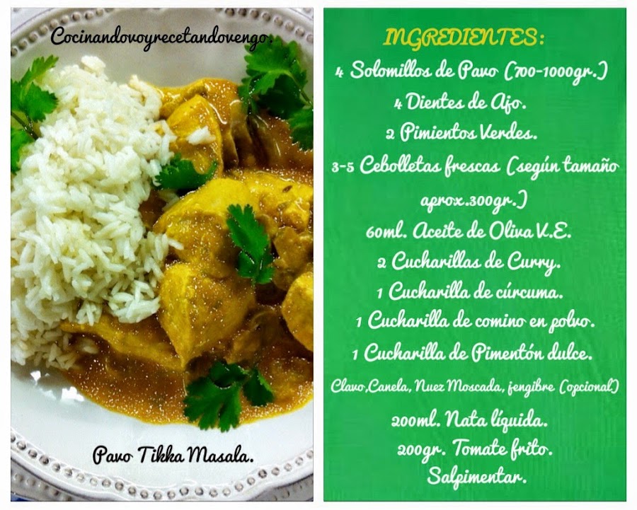 Hola a tod@s!! Hoy os traigo una receta internacional, éxito asegurado y fácil de hacer sin comprar ningún ingrediente extraño. Suele cocinarse con pollo, pero esta es mi versión, hay cientos o miles...y creo que todas son una maravilla. Tanto en India como Inglaterra, es un plato estrella (ambas nacionalidades se creen autores de la receta y la consideran plato nacional) yo no voy a entrar en polémicas de origen ;) pero si debo decir que es una maravilla, fácil y rápida de preparar. Tengo la suerte de que a todos nos encanta en mi casa y en especial a mi hija Silvia. Os la recomiendo y espero que lo preparéis y disfrutéis pronto.