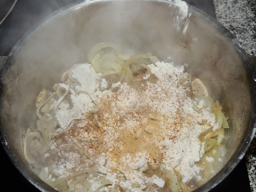 Se agrega la harina, el jengibre y la nuez moscada. Se deja un minuto.