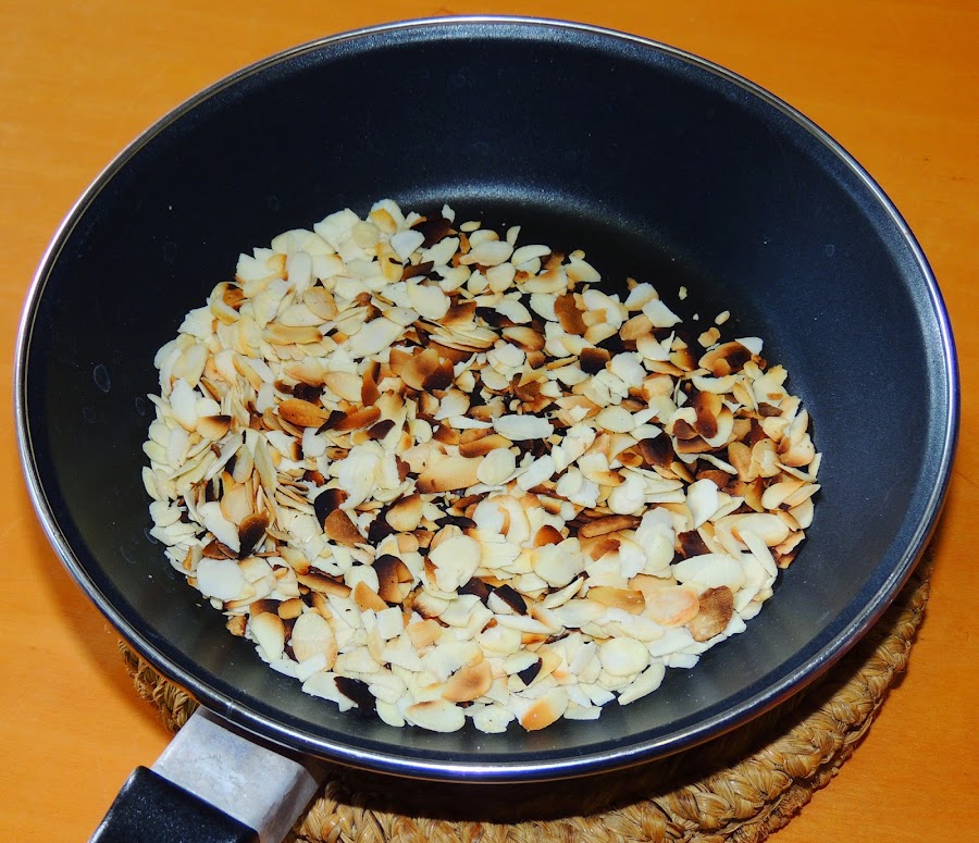 Finalmente, se adorna con las almendras tostadas y una ramita de perejil y se sirve bien caliente.