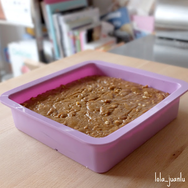 Echamos la mezcla en un molde cuadrado para hornear de 20 cm y lo dejamos enfriar un poco, para luego meterlo en el frigorífico.