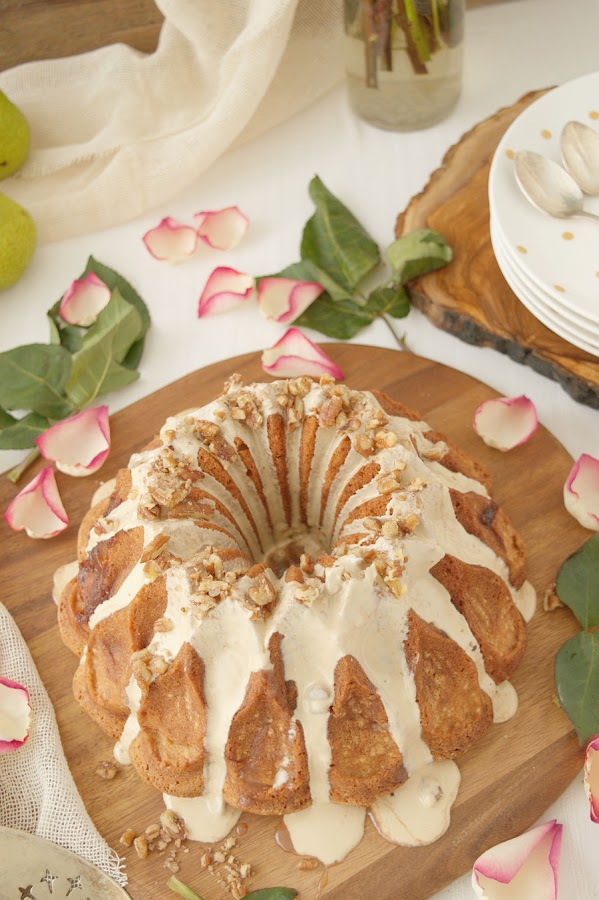 Spiced Pear Bundt with Vanilla Bourbon Glaze from The Crumby Cupcake