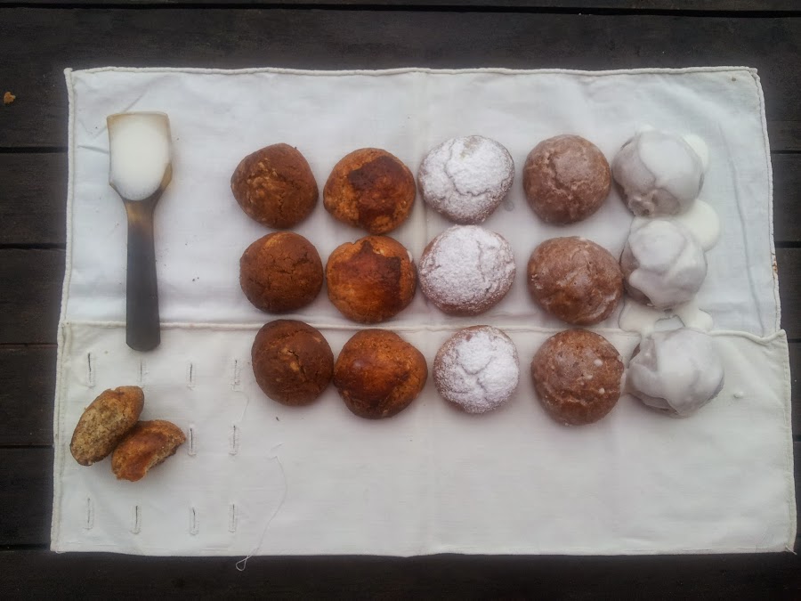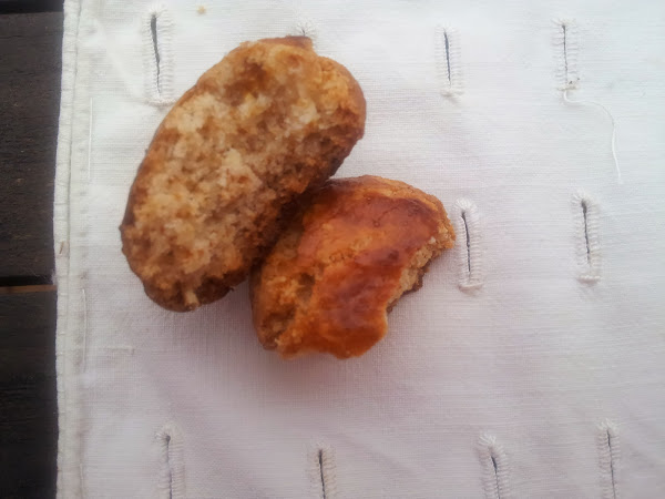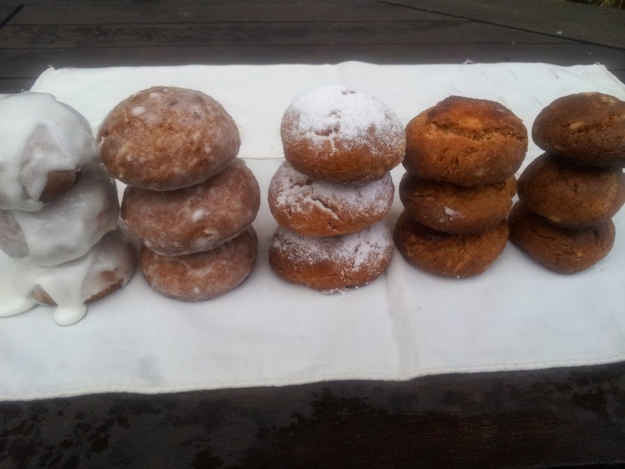 También las he presentado, para que viérais la diferencia sin nada, con huevo batido antes de hornear, con azúcar glass tamizado y con glasa al agua, que se hace exactamente igual que con la clara pero sólo con unas gotitas de agua fría.