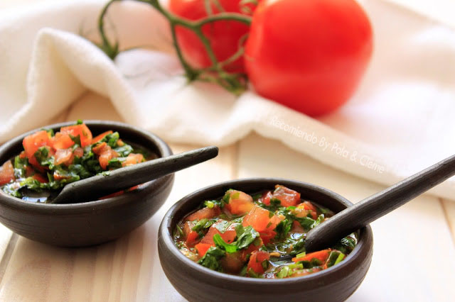 -Hola! Soy Pola, ya saben que yo vivo en Barcelona y a veces se me hace un poco difícil encontrar algunos ingredientes (si no voy a lugares específicos donde encuentro todo), entonces les daré la receta del pebre con algunas alternativas para reemplazar en el caso que no encuentren algo.