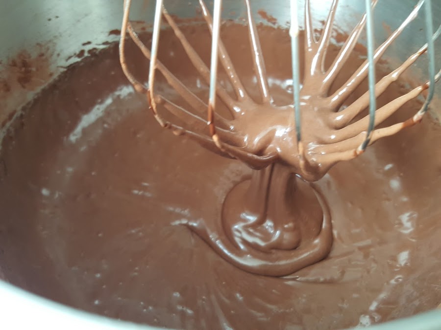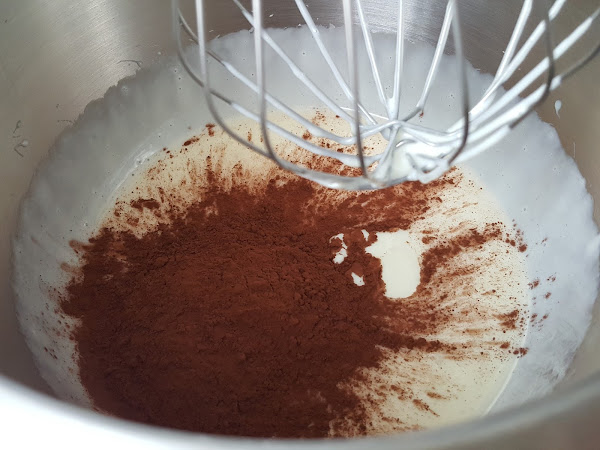 3. - Añadimos el chocolate derretido y mezclamos bien.