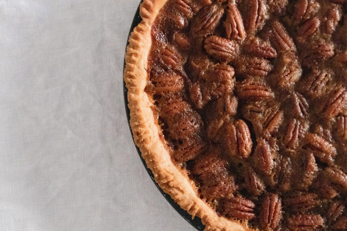 La tarta americana de nueces pecanas o pecan pie es sin duda la tarta americana en la que todos pensamos si pensamos en el postre típico americano para el día de Acción de Gracias. Es una tarta fácil de preparar y riquísima si os gustan los frutos secos caramelizados.