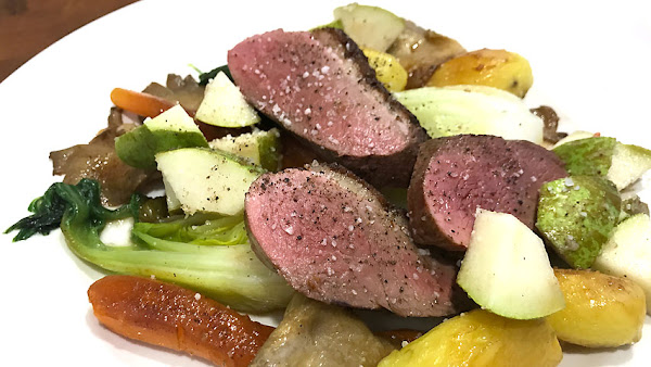 Cuando la verdura esté cocida saltéala en la sartén donde has hecho la pechuga añadiendo algo de grasa de pato.