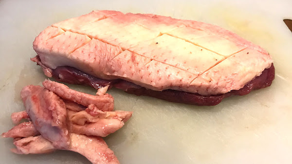 Limpia la pechuga de pato y recorta la grasa si sobra.