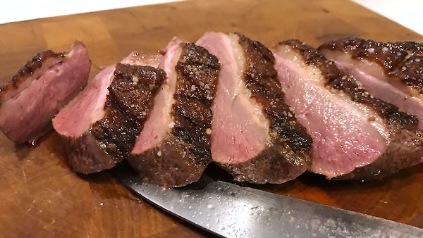 Trincha el magret en filetes como de un dedo de grosor.
