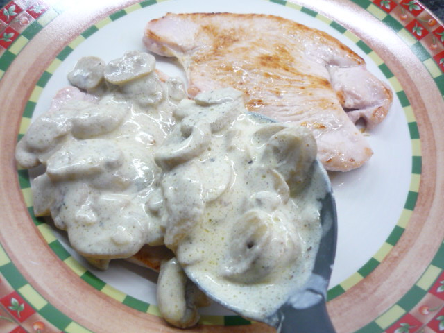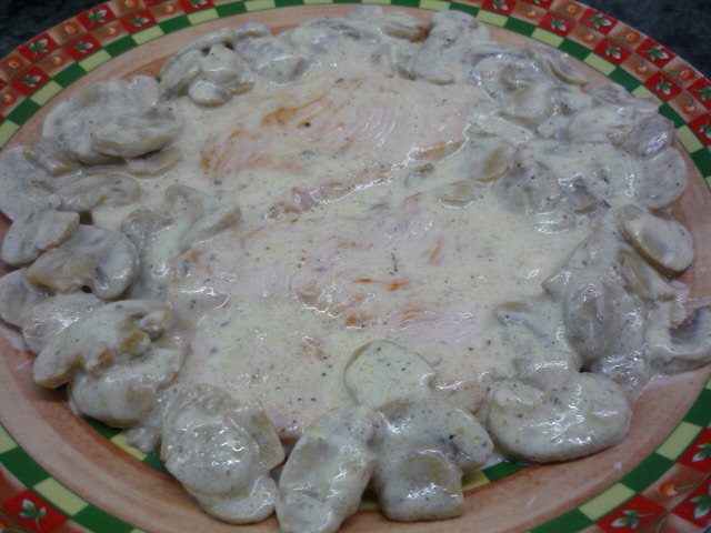 6.- Cuando estén listas, emplatamos sirviendo por encima la salsa de queso con los champiñones.