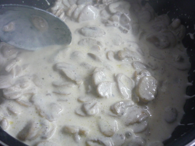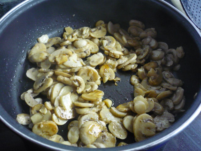 4.- Movemos a fuego lento hasta que comience a espesar y se lo agregamos a los champiñones ya hechos.