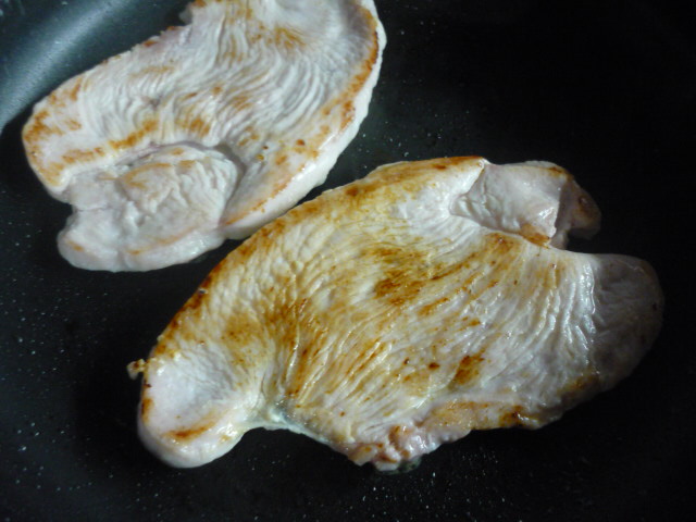 5.- Ponemos a la plancha las pechugas de pavo y asamos por ambas caras con un poco de sal.