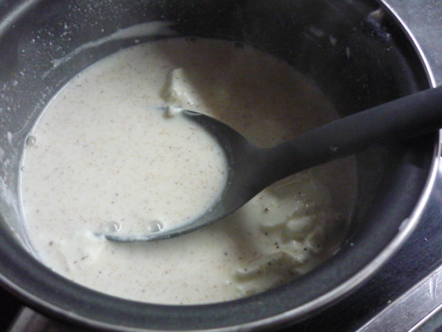 3.- Mientras calentamos la leche y derretimos el queso, añadimos un poco de nuez moscada.
