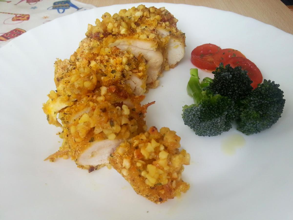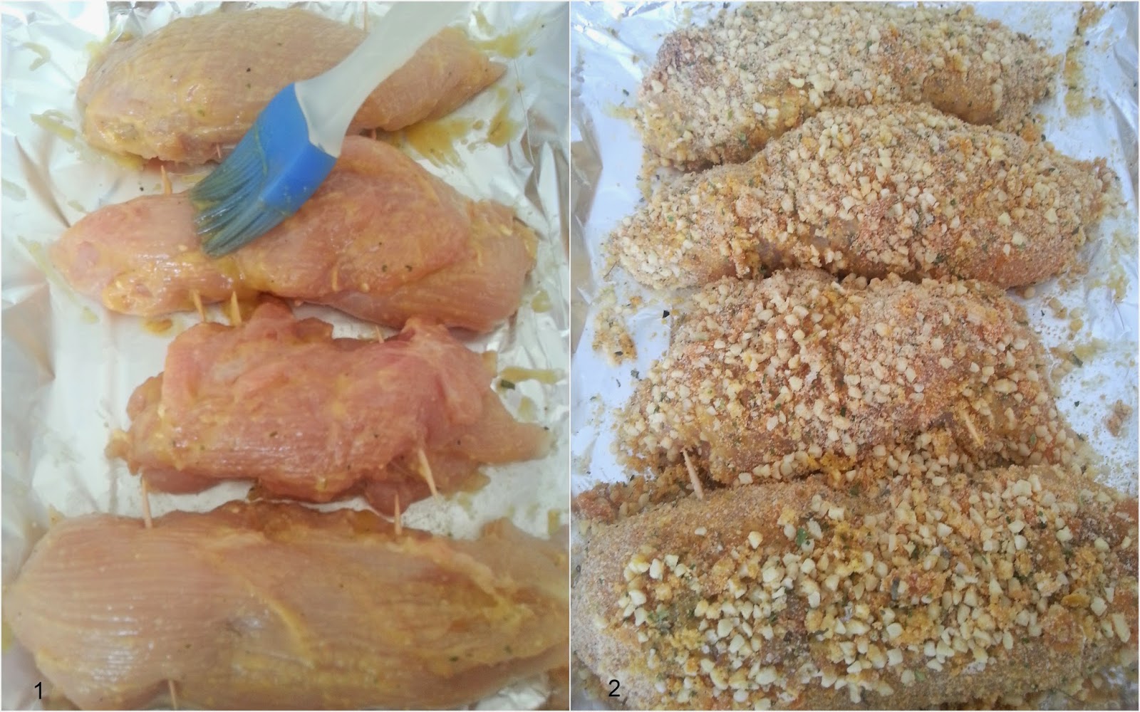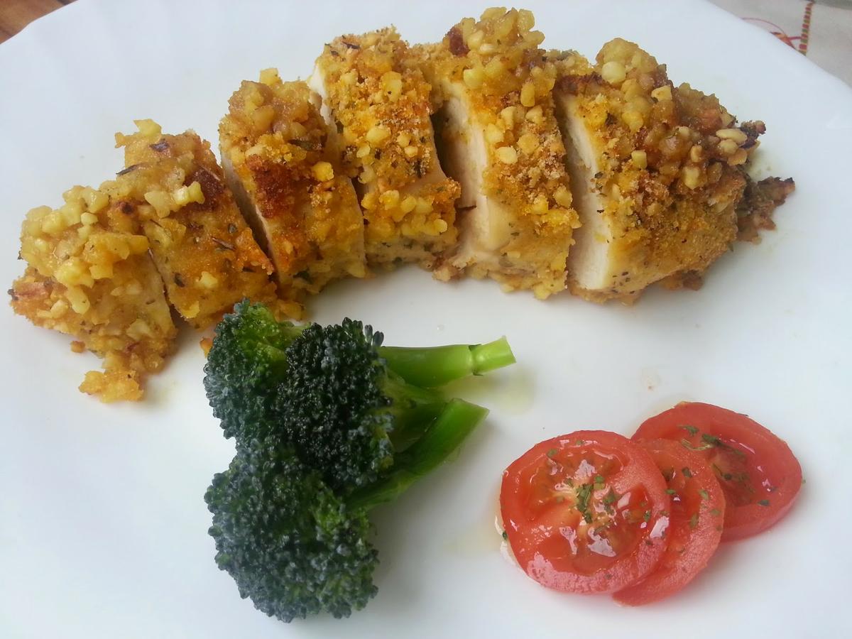 Siempre buscamos preparar los platos de manera diferente, así podemos comerlos varias veces sin cansarnos, por ejemplo las pechugas de pollo que son tan sanas por la poca cantidad de grasa que tienen variando la forma de hacerlas. Esta es una manera de presentarlas. Con una receta sana, nutritiva y muy fácil de preparar. Lleva una costra de nueces entre otras cosas que al cubrirla no la deja secar mientras esta en el horno y queda jugosa la carne al paladar. Seguimos con recetas practicas, que ya vendrán las que dan trabajo para que no perdáis la costumbre.Ingredientes: