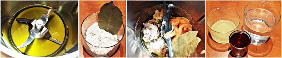 Coloca la MARIPOSA en las cuchillas y añade el pollo (laminado), la sal, el tomillo, el romero, el orégano, el laurel y la harina. PROGRAMA 10 MINUTOS / VAROMA / GIRO DERECHA - IZQUIERDA / VEL. CUCHARA.