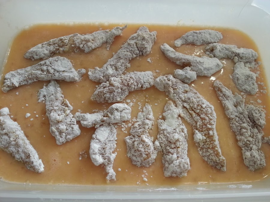 3. - Pasamos por la harina, que queden bien cubiertos.