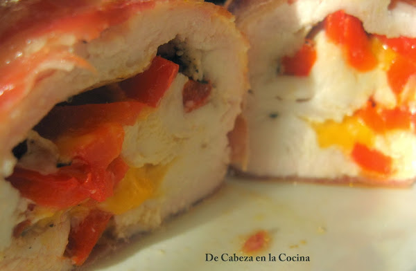 Si eres de sabores mas intensos, pica además un poco de bacon y ponlo también con el queso y el pimiento entre la pechuga antes de enrollar.