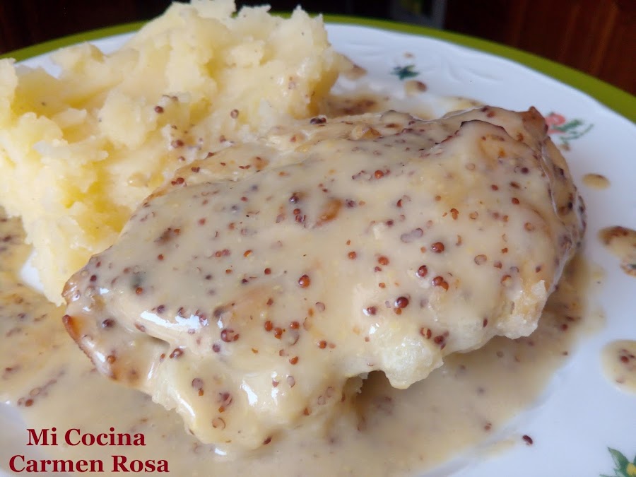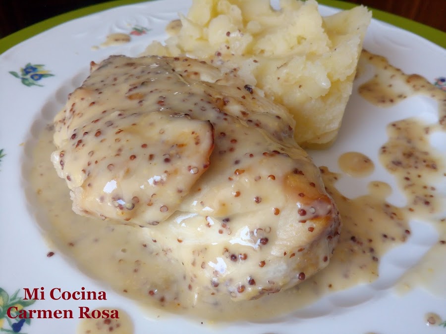 Personalmente es la que más me gusta, la que prefiero y la que suelo usar en mi cocina, como en el plato que he preparado hoy: pollo a la mostaza antigua.