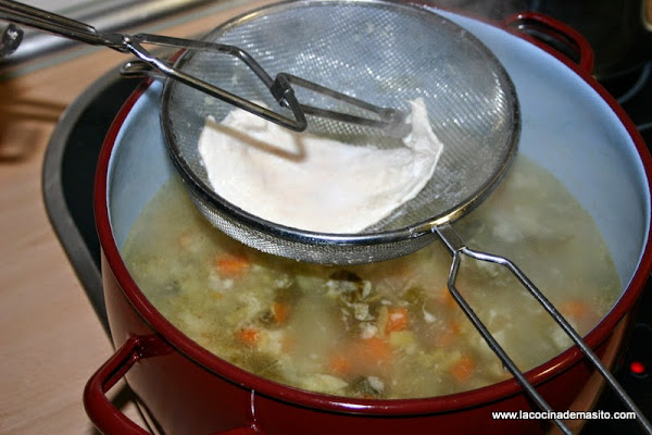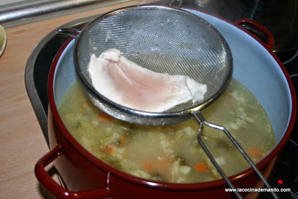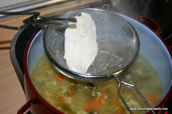 pues mirad que sencillo, ponemos sobre nuestra cazuela que esta hirviendo un colador grande y sobre el la pechuga, salpimentamos