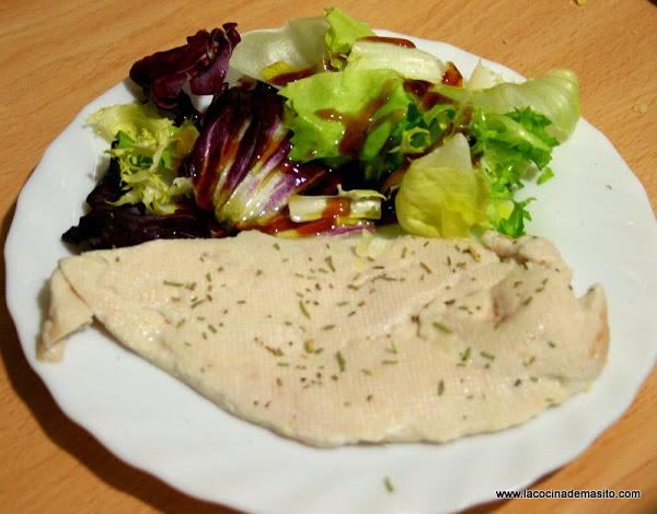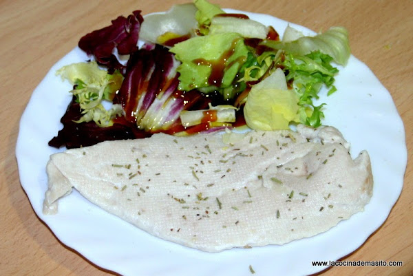 la servís en un plato con una ensalada y la echáis un poco de romero por encima si os gusta, mas fácil imposible. como habéis visto es una receta de lo mas sano. espero que os haya gustado, si es así, contarme que os ha parecido, me encantaría leeros, saludos
