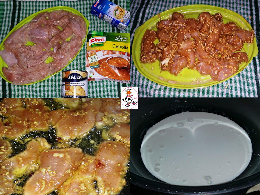 Ingredientes Pechuga de pollo con cebolla y nata (crema de leche):