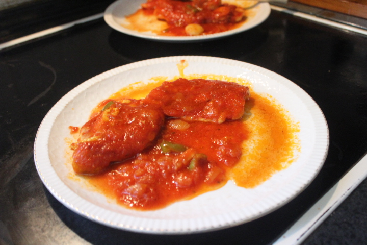 Hoy nos complicaremos muy poco la vida con la comida, nos conformaremos con una simple pechuga de pollo fileteada y una salsa de tomate que teníamos guardada en el congelador.