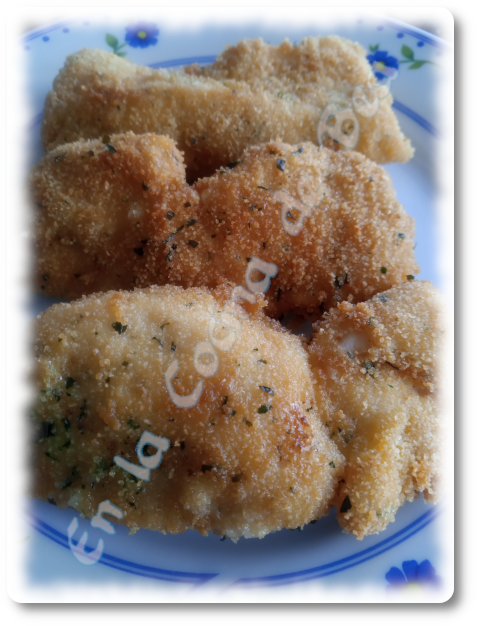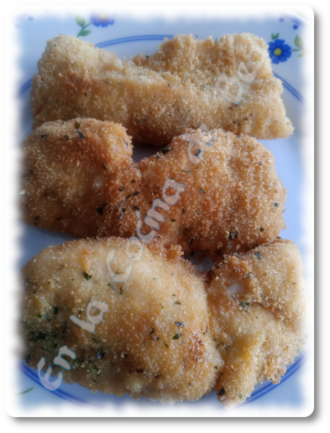 Lo primero que haremos, será trocear la pechuga y salar cada trocito. Después, los pasaremos por harina, huevo y el pan rallado.