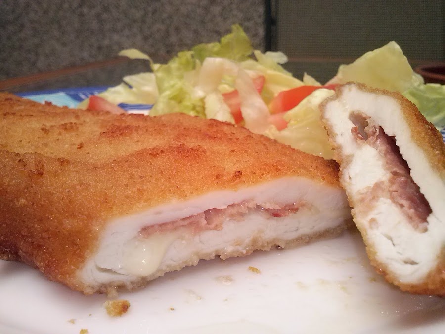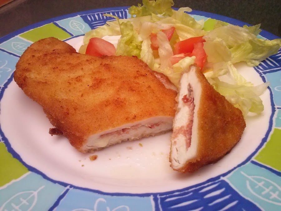 Unas pechugas de pollo empanadas con jamón y queso derretido... ummmh.....