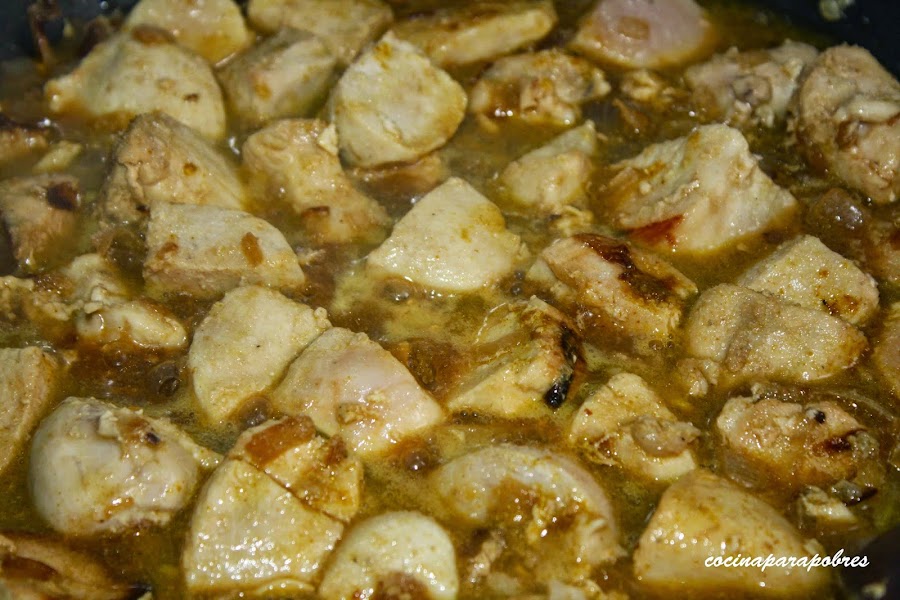 Cuando estén casi tierna incorporamos las pechugas, yo he usado pechugas enteras las cuales trocee, pero perfectamente podemos usar pechuga fileteada.