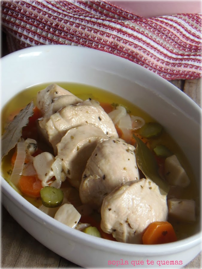 Cuando empiece a hervir añadimos la pechuga de pollo a la que habremos echado sal.
