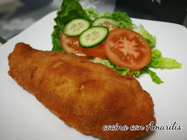 Paso 2.- Salpimentar los filetes, encima vamos a colocar primero el jamón cocido y después el queso. Ahora solo tenemos que cerrar el filete, cuidando de cerrar bien los lados para que no se salga el queso al freír.