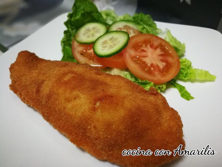 Paso 1.- Cortar la pechuga en filetes como si fuera un libro; es decir dejar unido un extremo .