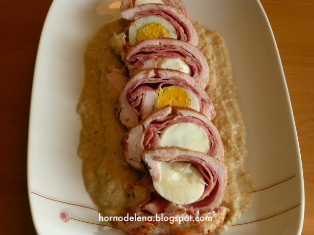 Cortamos la pechuga con un cuchillo bien afilado en ruedas de unos 2 centímetros. Las presentamos en una fuente con la salsa a los lados o en el fondo, a tu gusto.