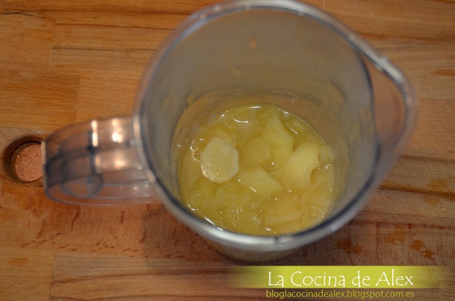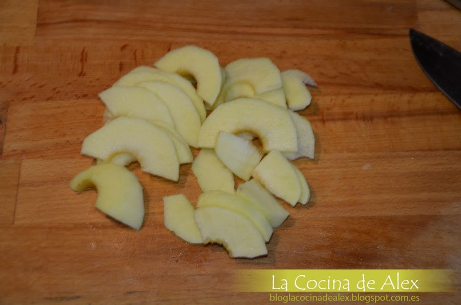 Para hacer la salsa de manzana, pelamos las manzanas, el jengibre y los cortamos en láminas, en una cazuela con un poco de aceite doramos la manzana y el jengibre hasta que esté dorado. La cantidad de jengibre os lo dejo un poco a vuestro gusto ya que su sabor es un poco especial y no gusta a todo el mundo.