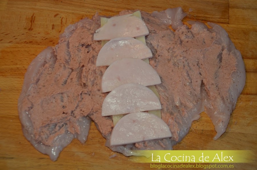 PREPARACIÓN:Lo primero que vamos a preparar es la pechuga rellena, abrimos las pechugas dejándola lo mas abierta posible, esto nos lo puede hacer el carnicero cuando las compremos. Sal-pimentamos la pechuga por ambos lados.