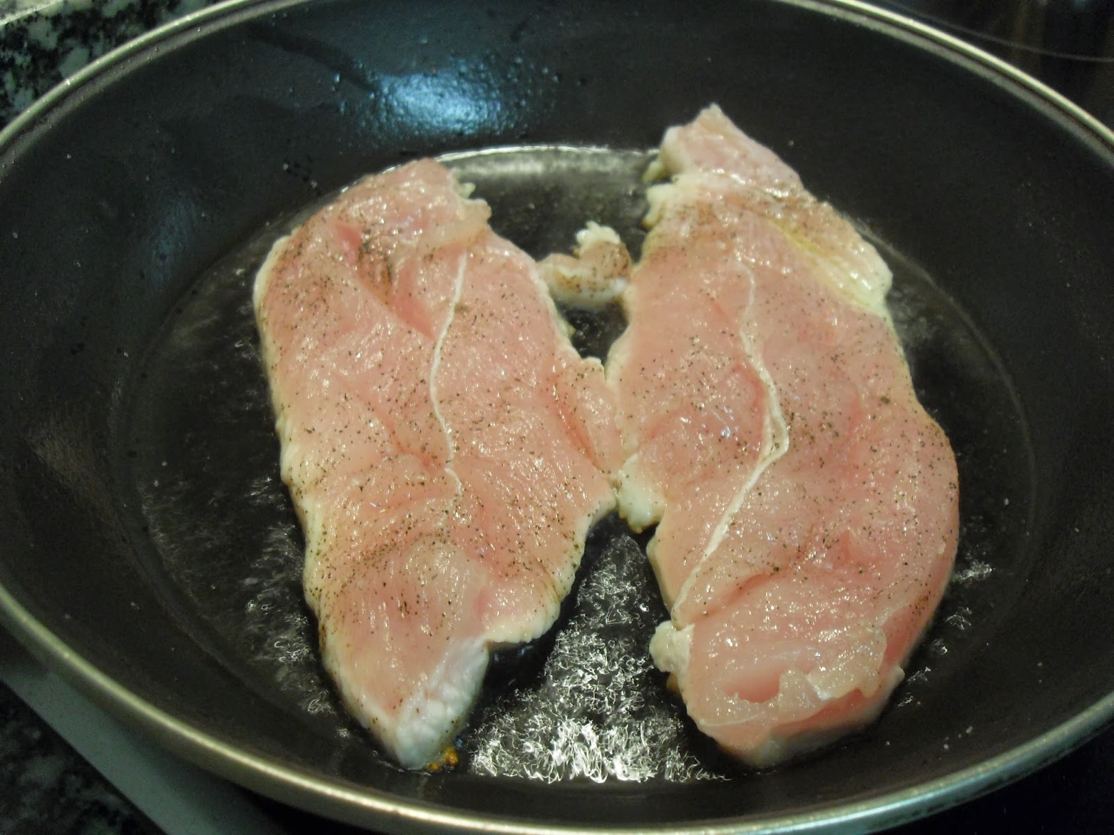 Salpimentar las pechugas y hacerlas en la plancha con un chorrito de aceite.