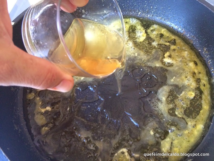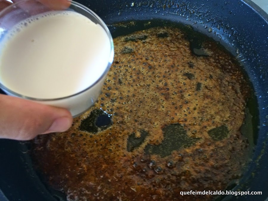Una vez caliente le incorporamos los 100 ml. de caldo de carne.