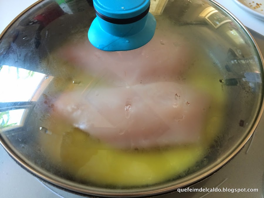 Tapamos la sartén y la dejamos cocinando durante 6 minutos por cada lado.