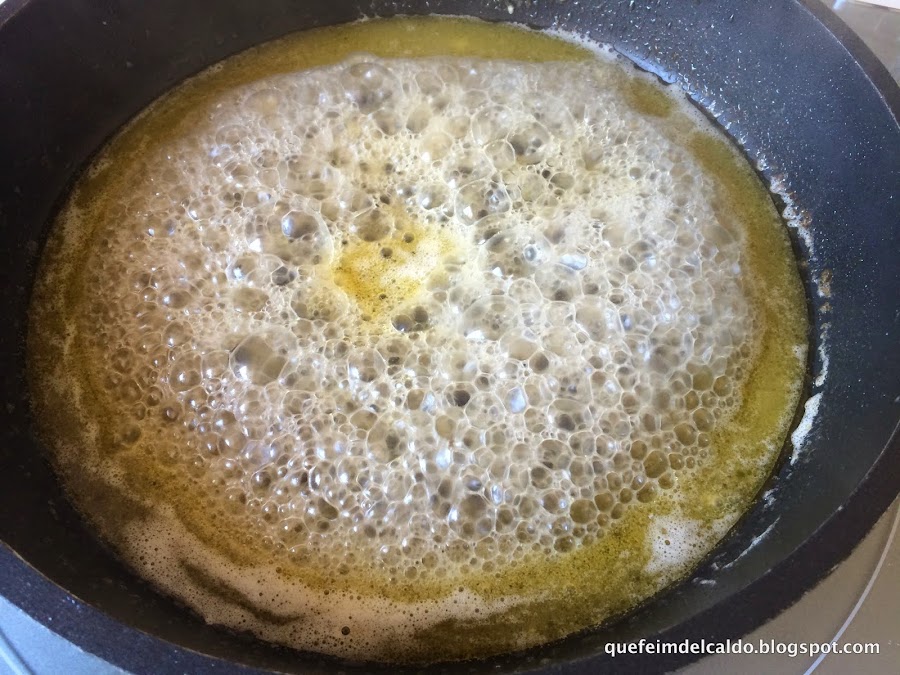 Esperamos a que se derrita la mantequilla y empiece a salir espuma.