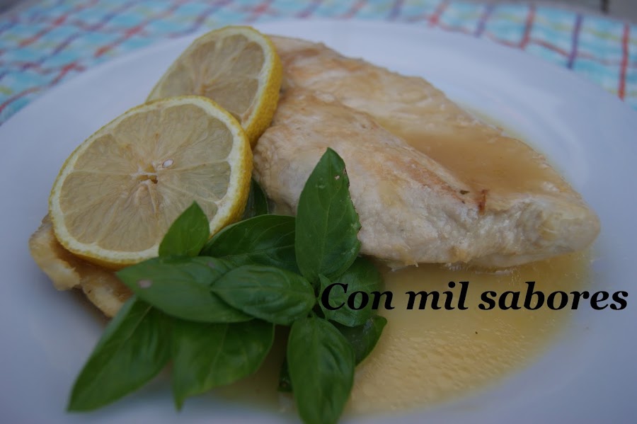 Preparación:Salpimentamos las pechugas por ambas caras, cortamos la cebolla en rodajas. Ponemos un poco de aceite de oliva a calentar en una cazuela, cuando esté en su punto doramos las pechugas por ambos lados (sellamos), las sacamos y las reservamos.En el mismo aceite sofreímos la cebolla hasta que esté doradita, ponemos nuevamente las pechugas, les exprimimos por encima el zumo de un limón y cortamos el otro en rodajas y lo añadimos a la cazuela.Regamos con un poco de caldo, tapamos la cazuela y lo dejamos cocer hasta que las pechugas estén bien tiernas.