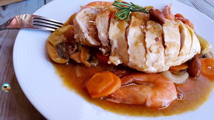 ¿Estáis aburridos de comer las pechugas de pollo siempre de la misma forma? ¡No os preocupeis! Para hoy tengo unas ricas pechugas de pollo con almendras y langostinos.