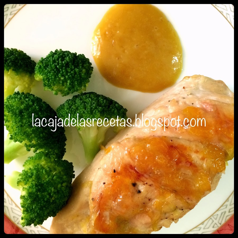 Separamos las pechugas de la salsa, y pasamos esta por la minipimer hasta hacerla puré. Servimos las pechugas sobre una cama de puré, acompañadas de un poco de brócoli. Pintamos las pechugas con la confitura que habíamos reservado, y listo. A deleitarse con su explosión de cítricos en la boca.