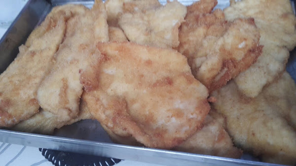 9.- Sacaremos los filetes que ya estén dorados sobre una bandeja forrada de papel de cocina, para que absorba el exceso de aceite al freír y listo para consumir.
