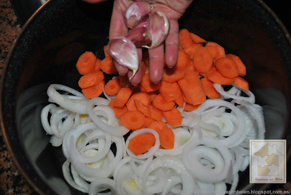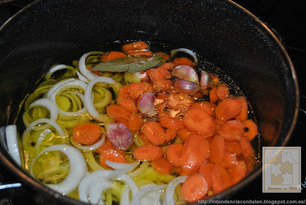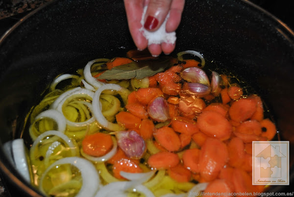 Ponemos a fuego, añadimos la sal y dejamos reducir y que se hagan las verduras.