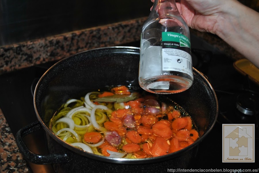 En ésta ocasión he utilizado vinagre de estragón, pero usad el que más os guste, aunque os recomiendo un vinagre de vino blanco, así no se os oscurecerán las pechugas.