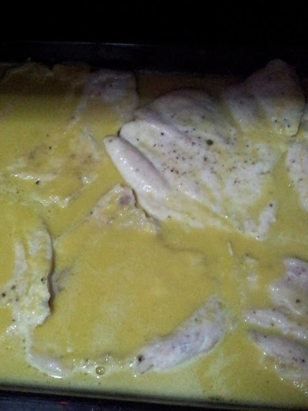Añadimos la salsa al pollo que esta en el horno, dejamos unos 10 minutos para que se mezcle todo